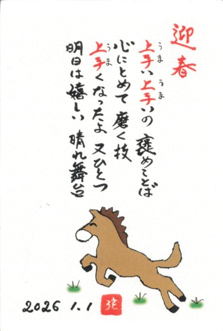 昭和101年となる今年、私達「弦洲会」も新たなる出発を胸に干支の馬の如く大正琴の世界を駆け巡りたいと思います。